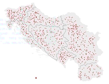 More than 3,000 Corporative Centers were built across Yugoslavia in the 1950s, making it the largest construction effort of its kind and marked a pivotal moment in the transformation of Yugoslavian villages In Macedonia, we have mapped over 100 identical buildings, most in a state of decay, mirroring the current condition of the villages.